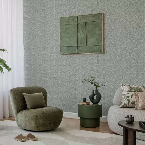 Tapete Botanischer Damast in Hellgrau mit weichen Konturen Nr. a00815v2