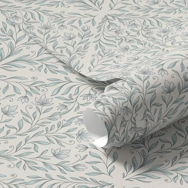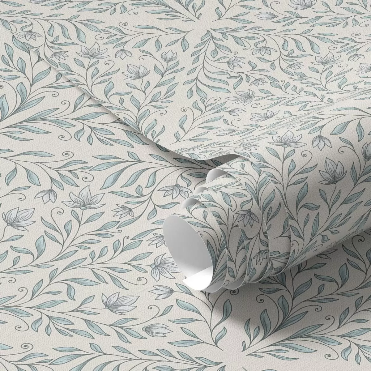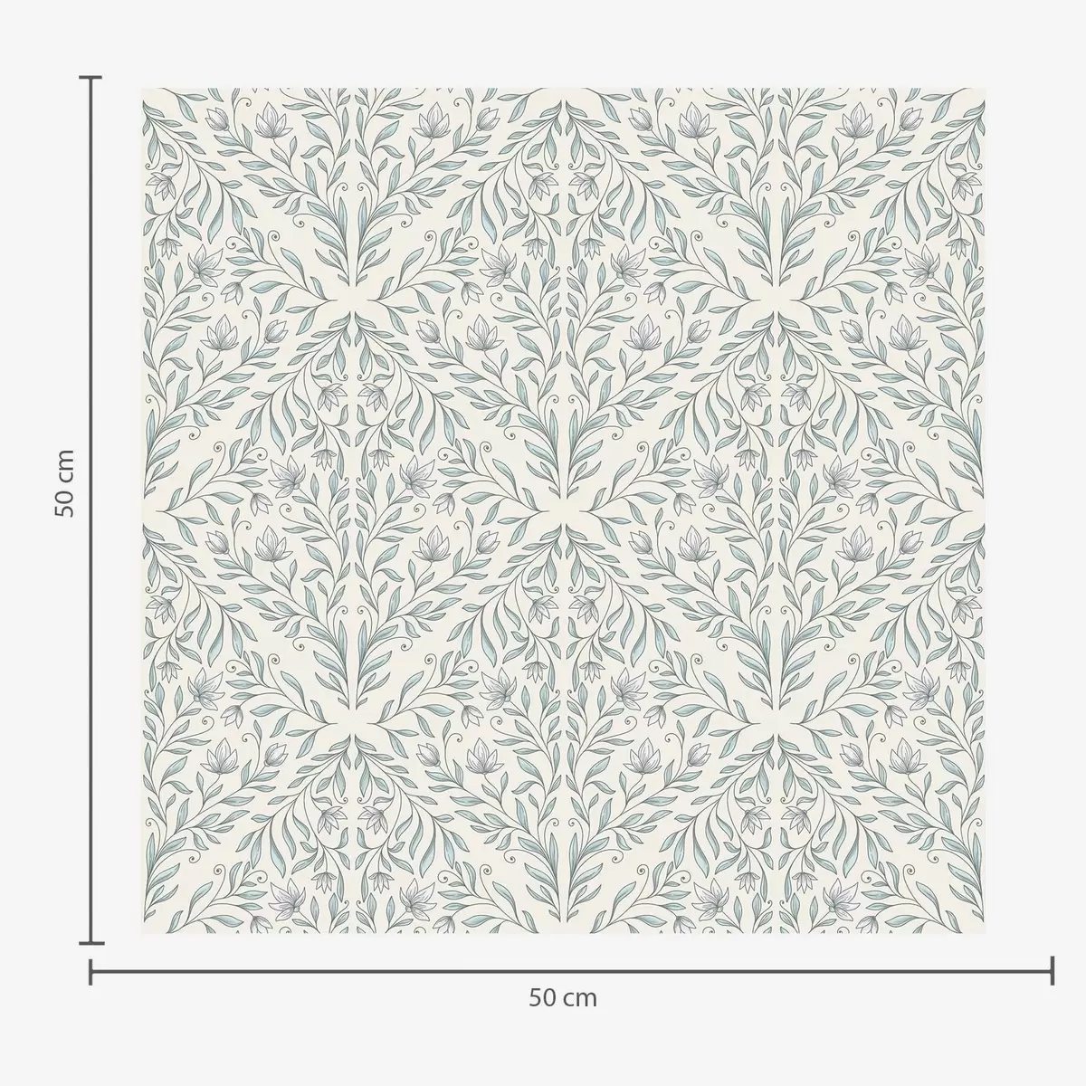 Tapete Spitzenmuster auf cremeweißem Grund mit türkisfarbenem Rand Nr. a00815v4
