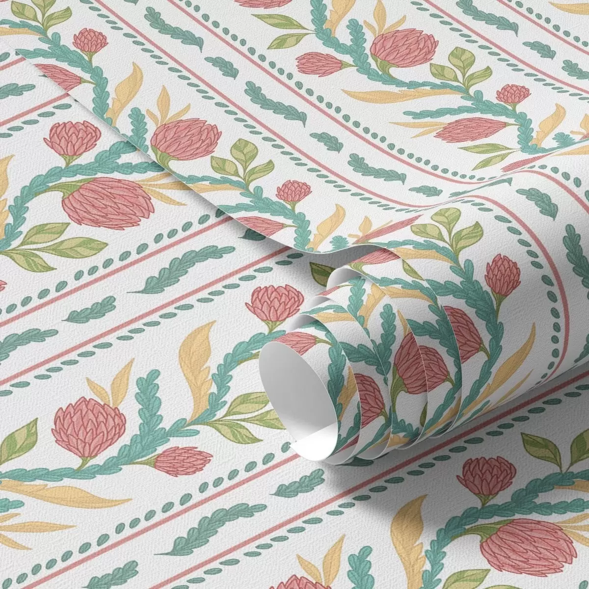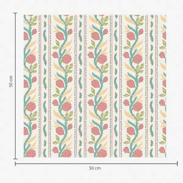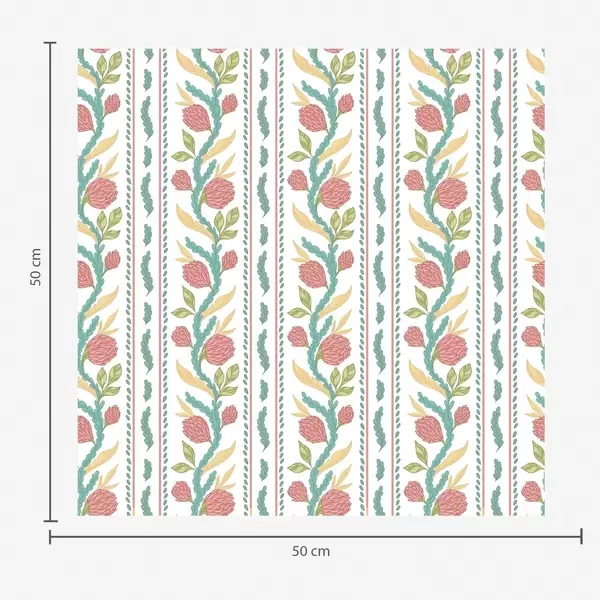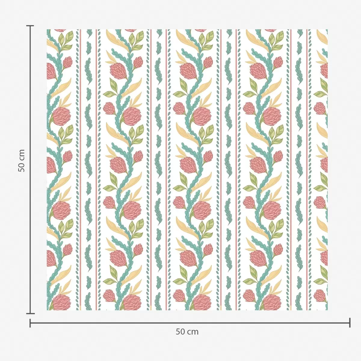 Tapete Vertikale Streifen mit Korallenblüten und türkisfarbenen Blättern Nr. a00816