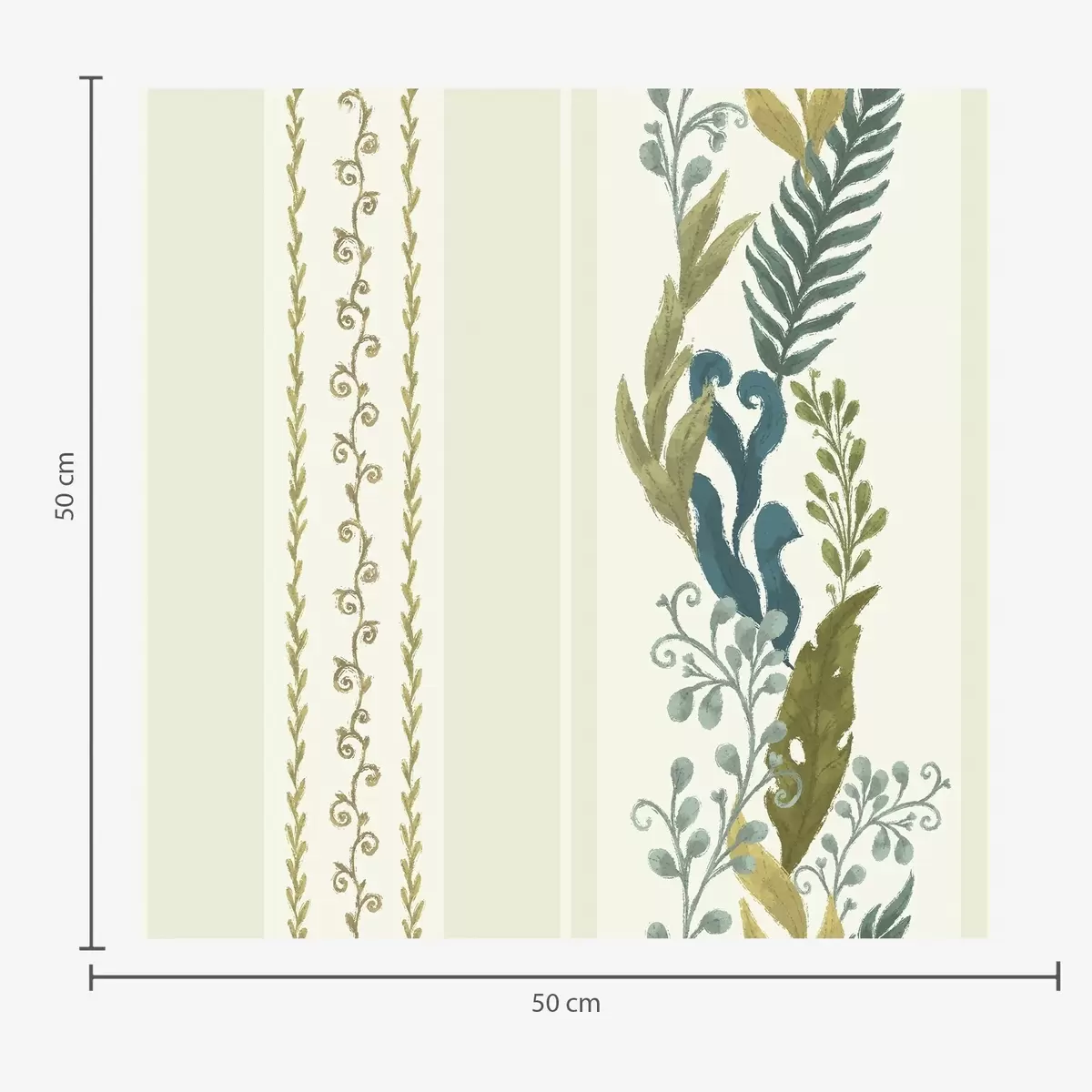 Tapete Breite Streifen mit malerischen Zweigen in Blau-Oliv-Tönen Nr. a00825