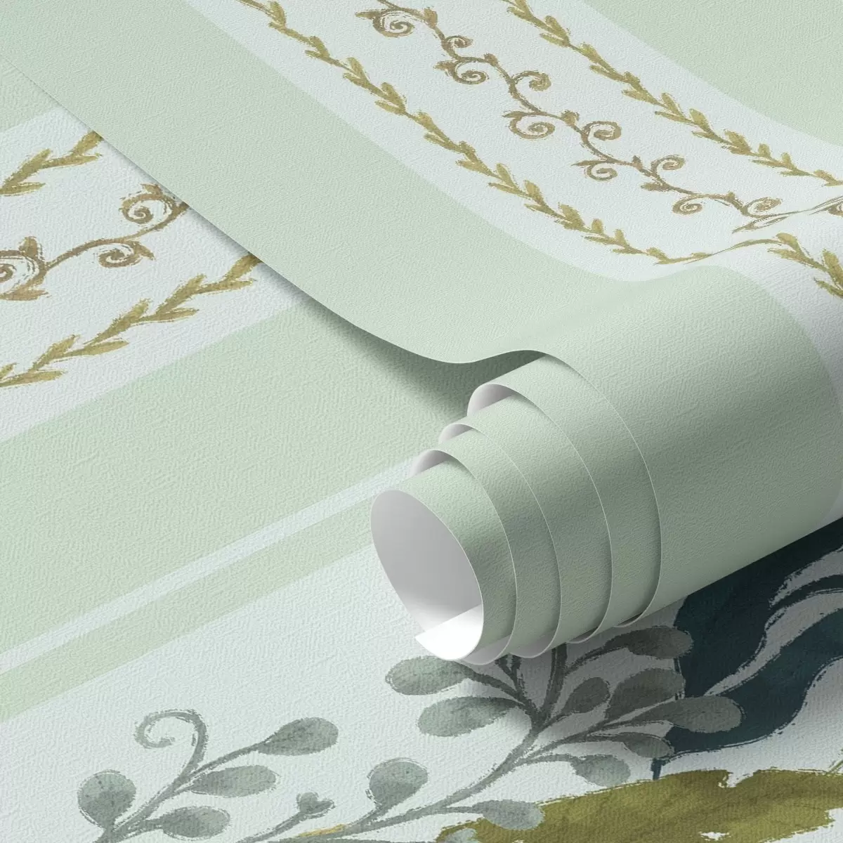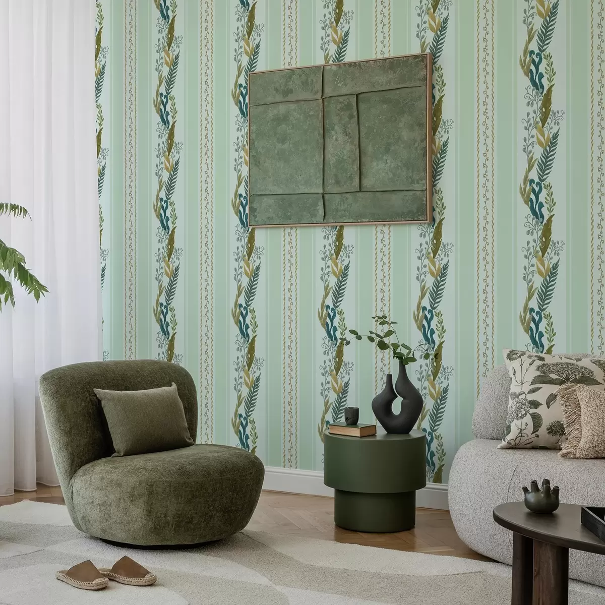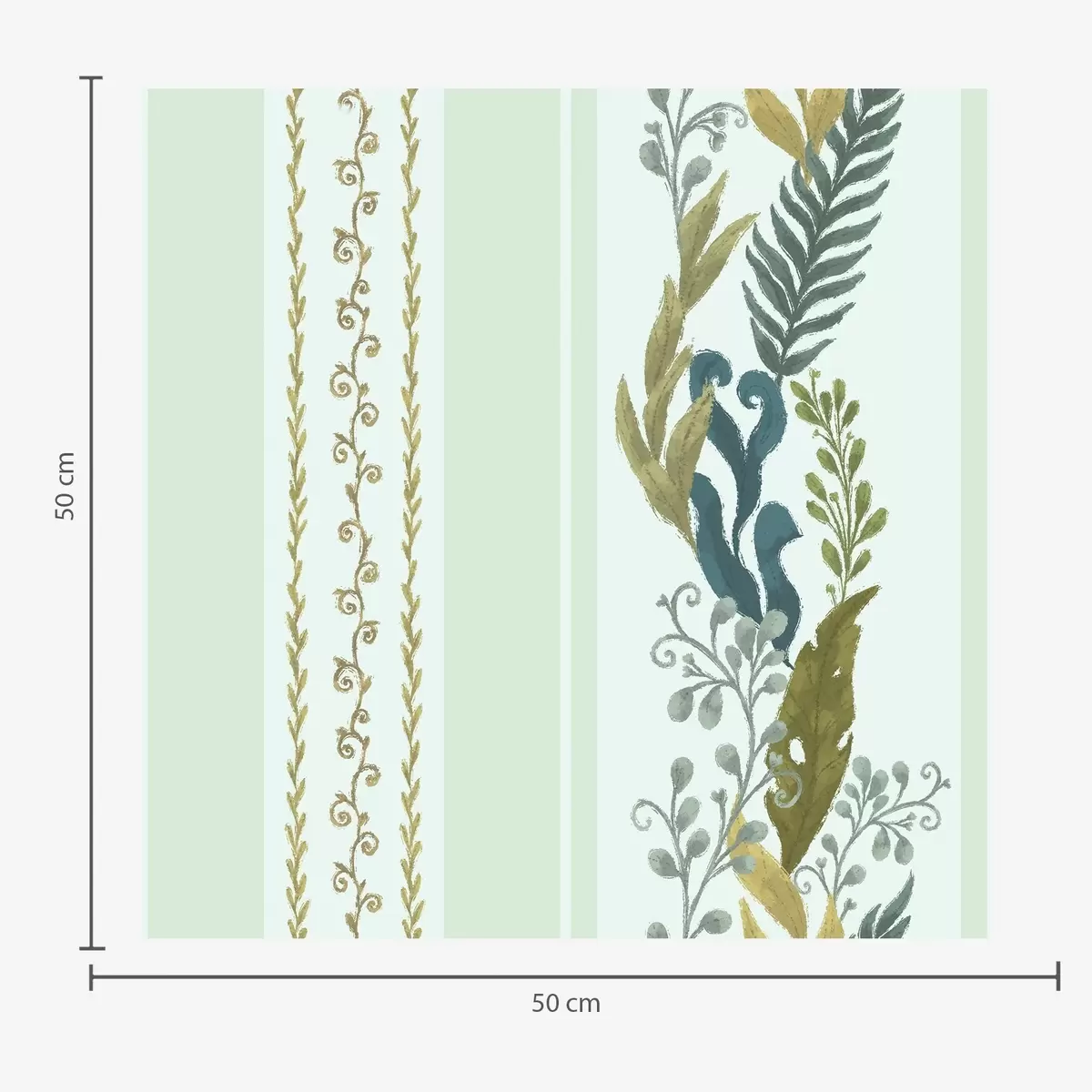 Tapete Breite Streifen mit malerischen Zweigen auf sanftem Mint Nr. a00825v1