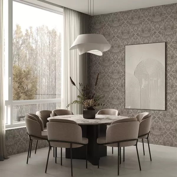Tapete Damast in warmen Graubrauntönen auf hellem Grund Nr. a00826v3