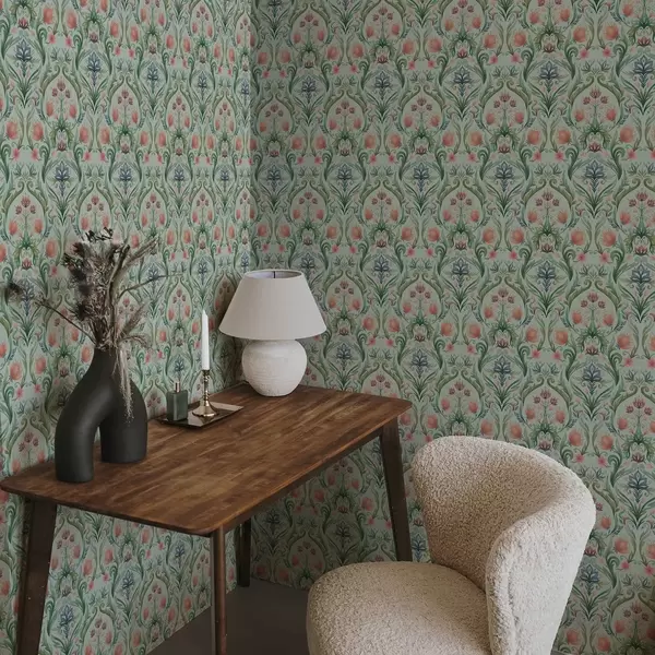 Tapete Symmetrisches Blumenornament, mint-cremefarbene Farbpalette Nr. a00827v1