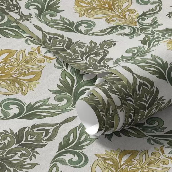 Tapete Damast mit grünen Schnörkeln auf hellem Grund Nr. a00828v1
