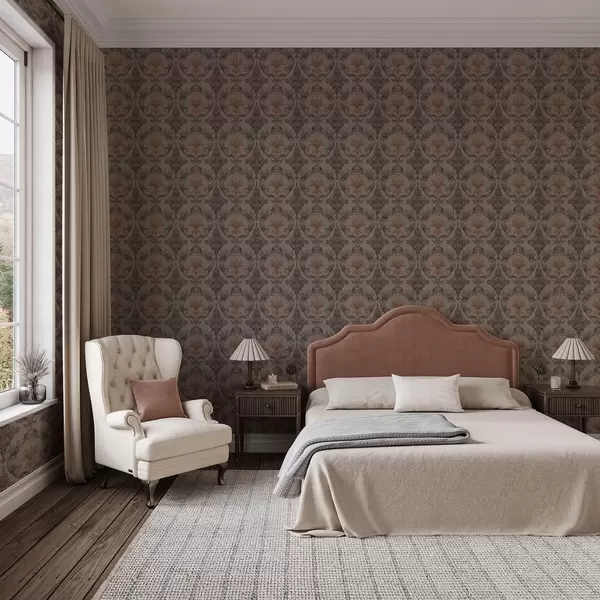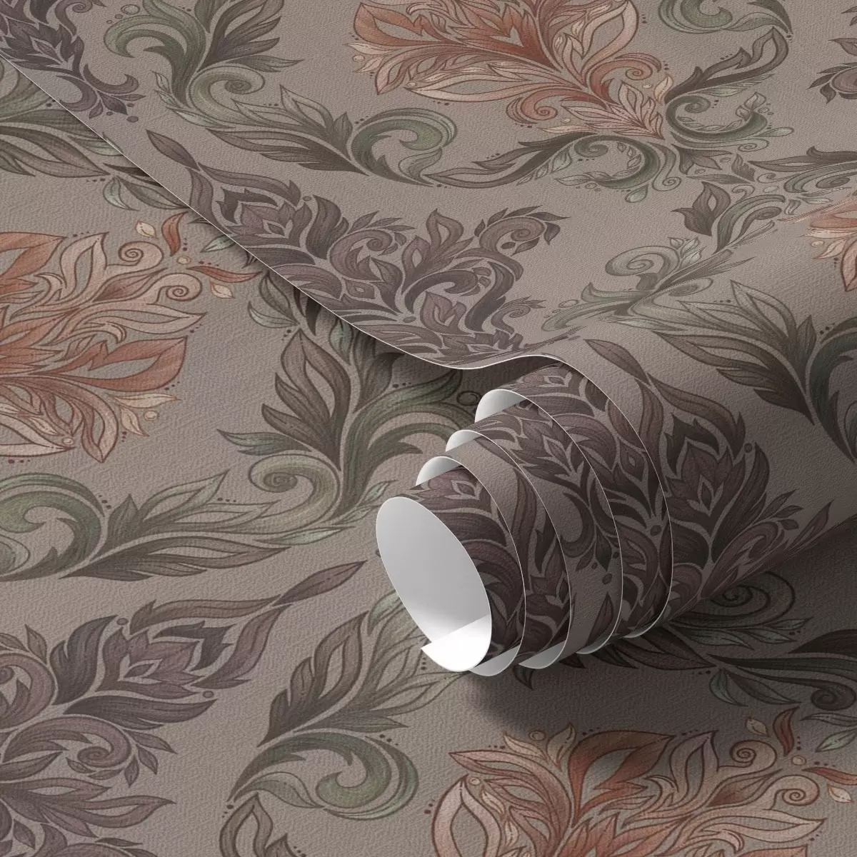 Tapete Damast in Braun-Terrakotta-Farben, warmer grauer Hintergrund Nr. a00828v2