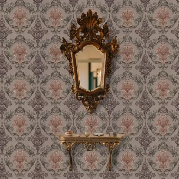 Tapete Damast in Braun-Terrakotta-Farben, warmer grauer Hintergrund Nr. a00828v2