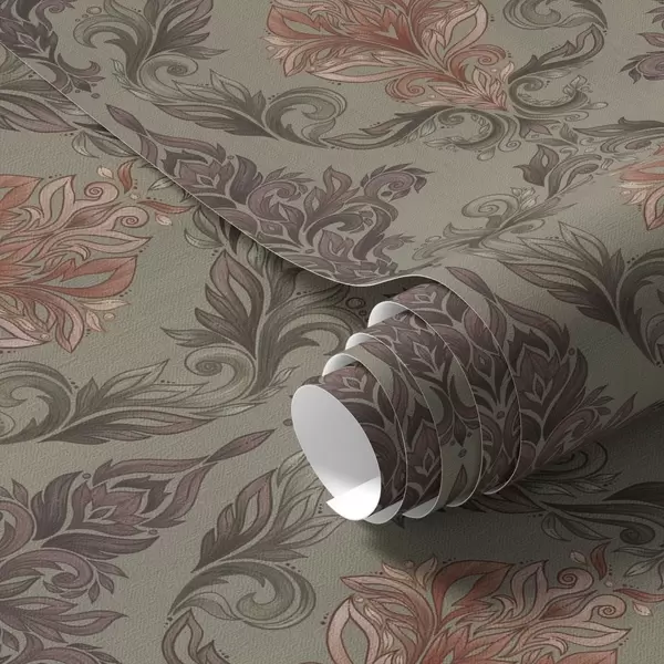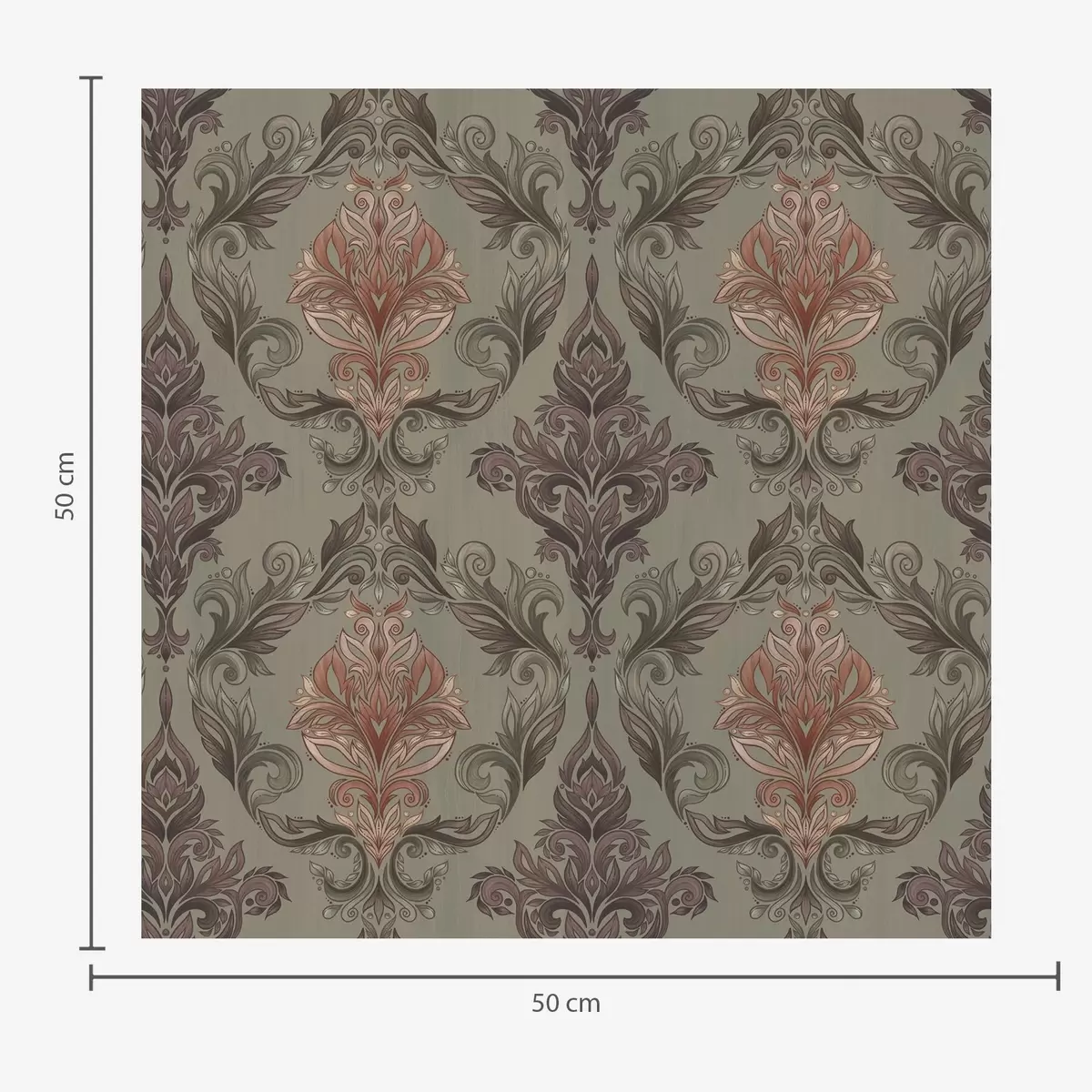 Tapete Terrakotta-Damast auf gedecktem Olivgrün Nr. a00828v3