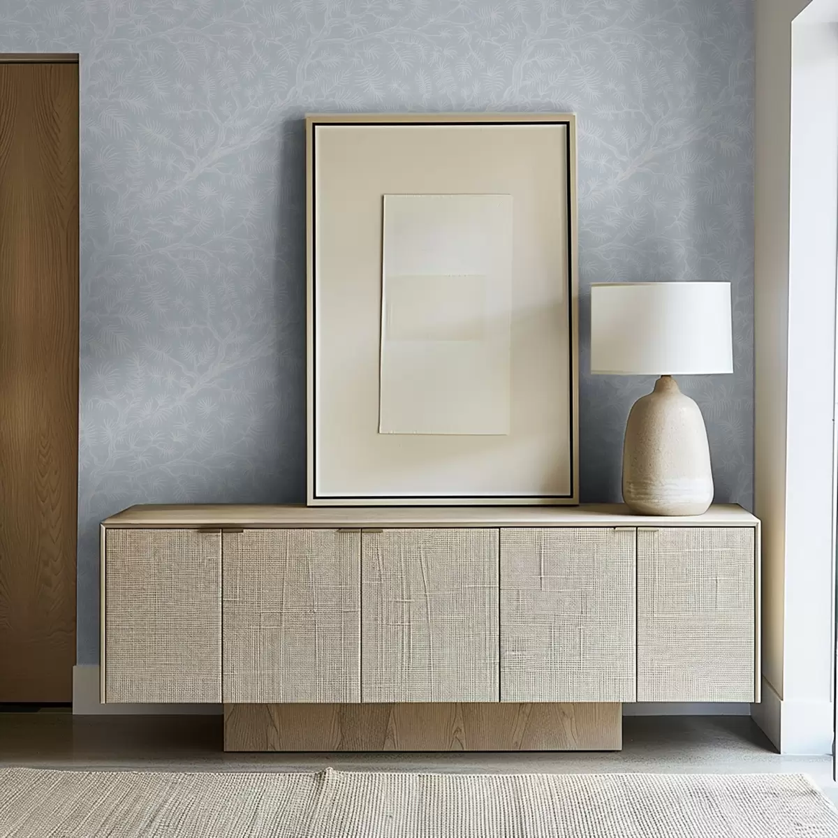 Tapete Kieferzweige in hellen Farbtönen auf blauem Hintergrund Nr. a00838