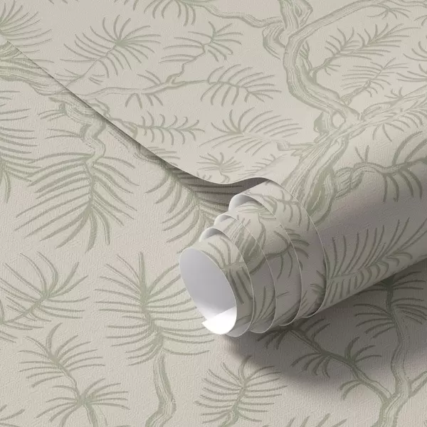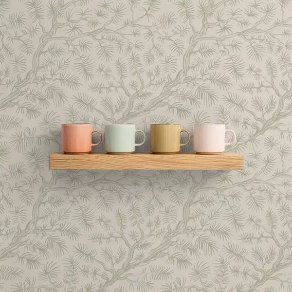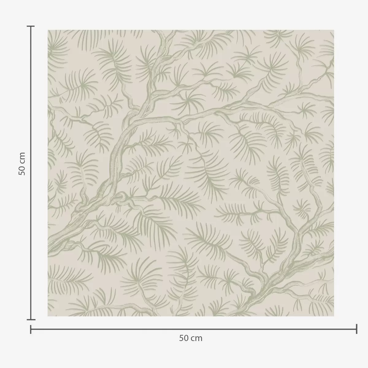 Tapete Kiefernzweige in hellgrünen Farbtönen auf beigem Hintergrund Nr. a00838v1