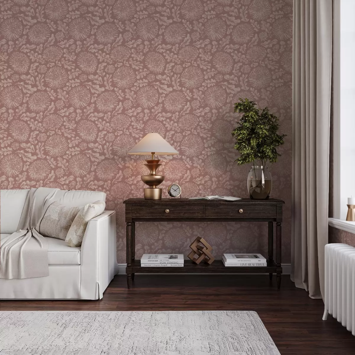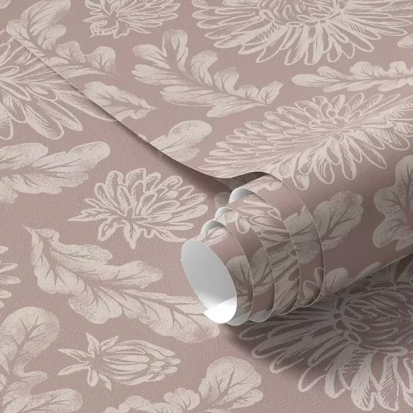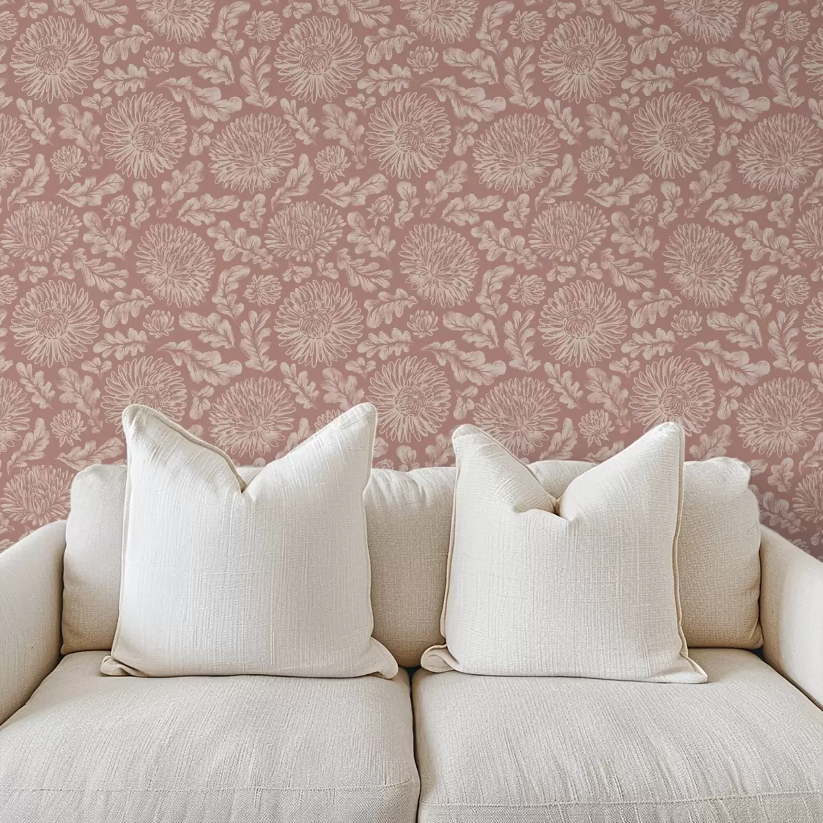 Tapete Cremefarbene Chrysanthemen auf Altrosa Nr. a00840v2