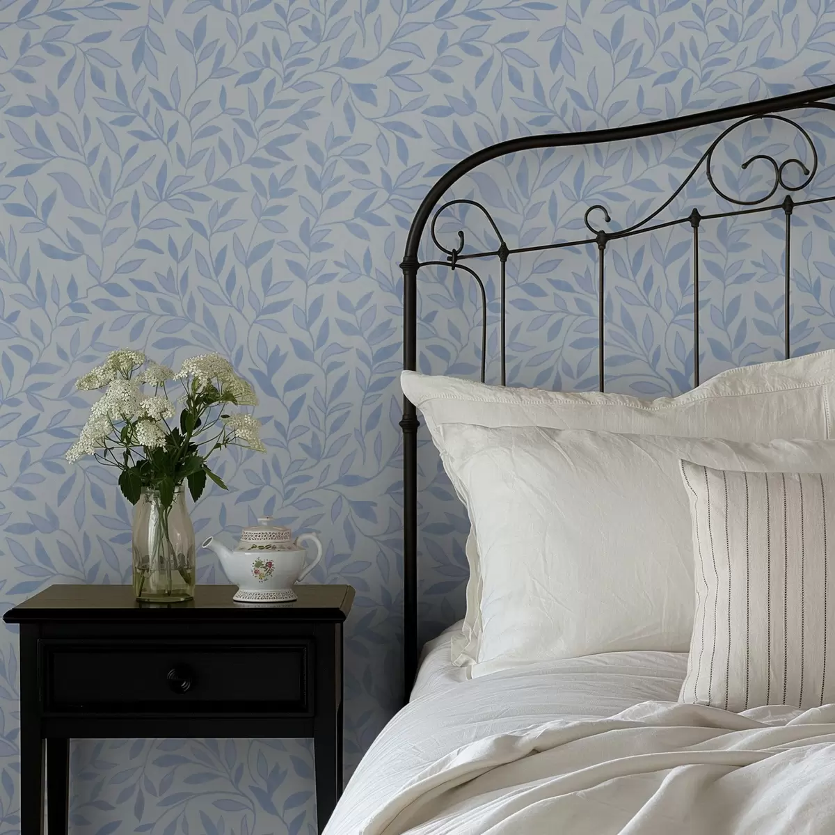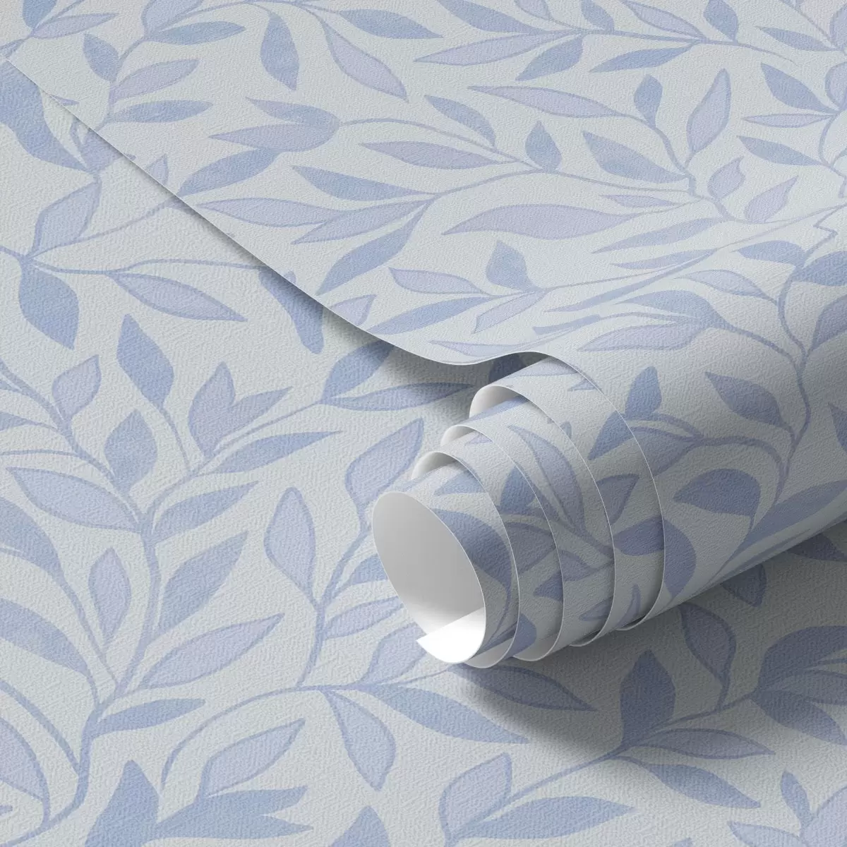 Tapete Blaue Zweige mit Blättern auf hellblauem Hintergrund Nr. a00842