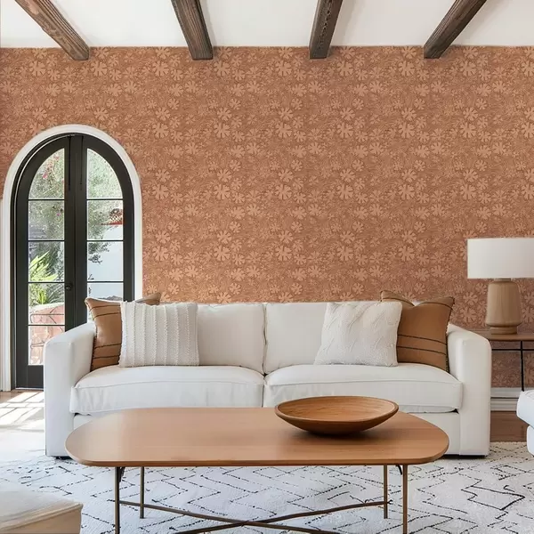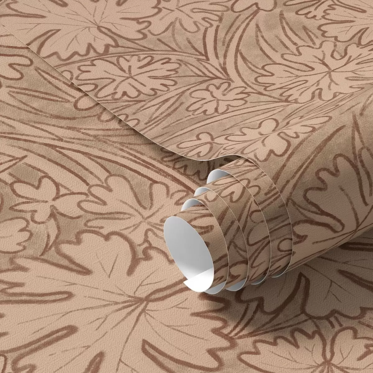 Tapete Feldblätter und Gräser in einer terrakotta-beigen Farbpalette Nr. a00847