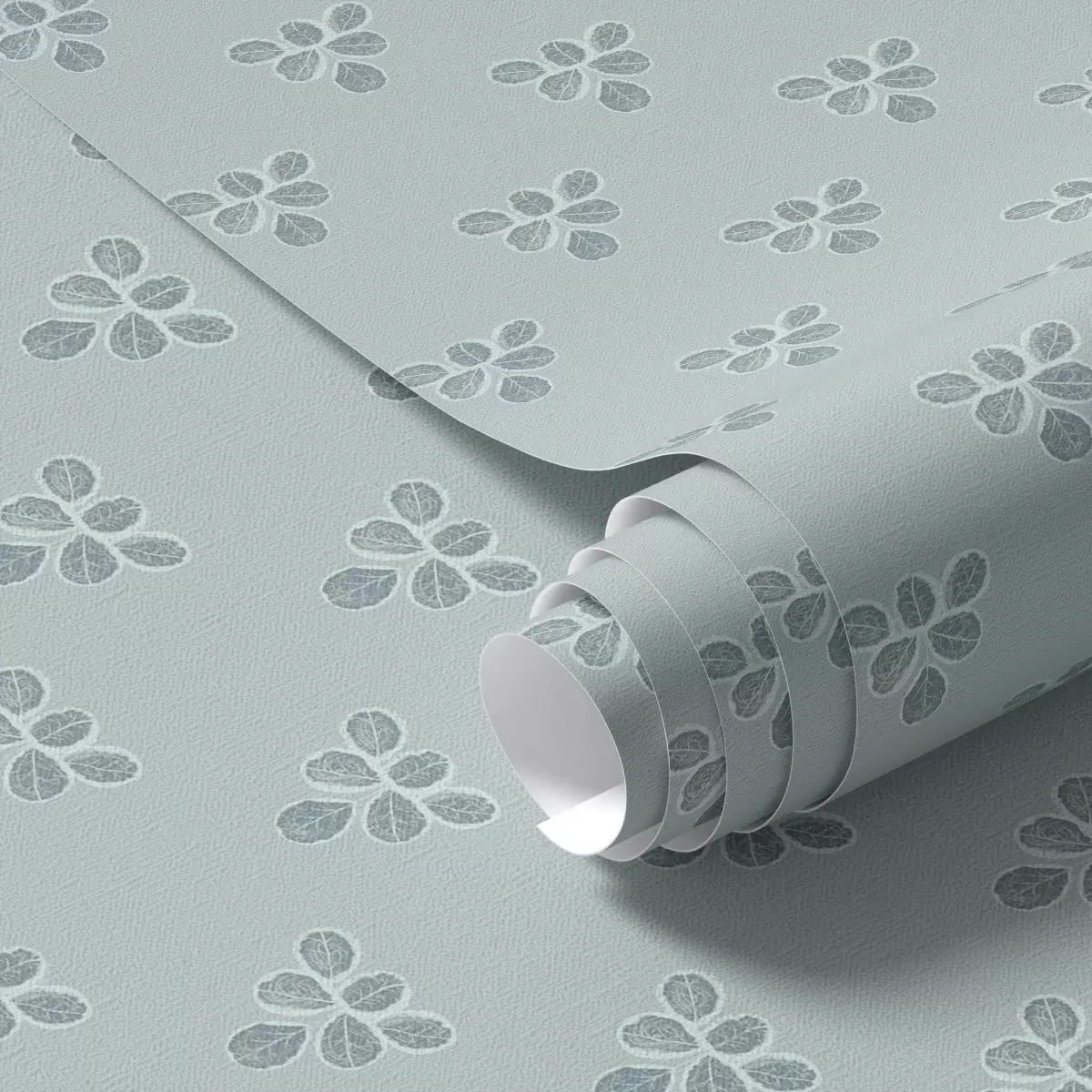 Tapete Kleine Wiederholung: Blätter-Trios auf kühlem Blau Nr. a00848v1