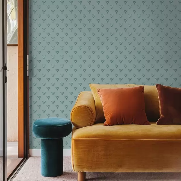 Tapete Kleine Wiederholung: Blätter-Trios auf kühlem Blau Nr. a00848v1