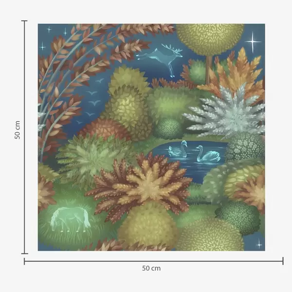 Tapete Märchenhafter Nachtgarten mit einem See und leuchtenden Tieren Nr. a00851