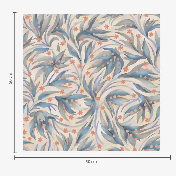 Tapete Abstrakte blaue Blätter mit korallenroten Blüten Nr. a00852