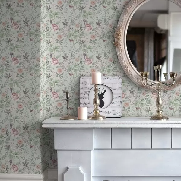 Tapete Pastellfarbener Garten mit Rosen, Farnen und Trauben Nr. a00867