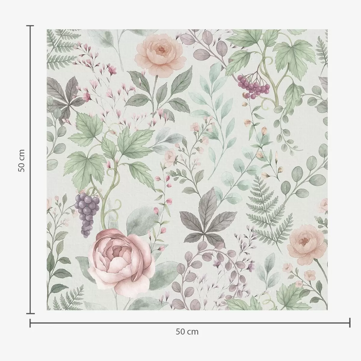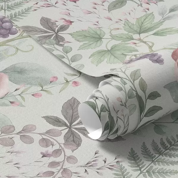 Tapete Pastellfarbener Garten mit Rosen, Farnen und Trauben Nr. a00867