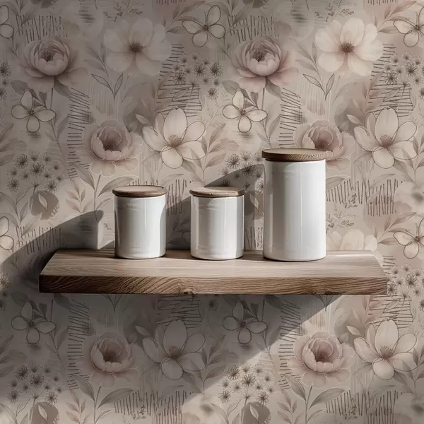 Tapete Sepia-beige Blumenmuster mit Schmetterlingen und linearen Akzenten Nr. a00870