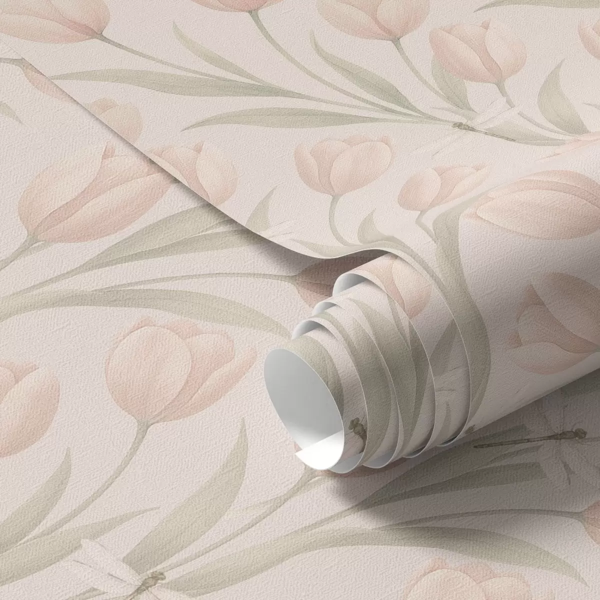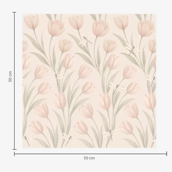 Tapete Pastellfarbene Tulpen mit Libellen auf Blush Nr. a00876