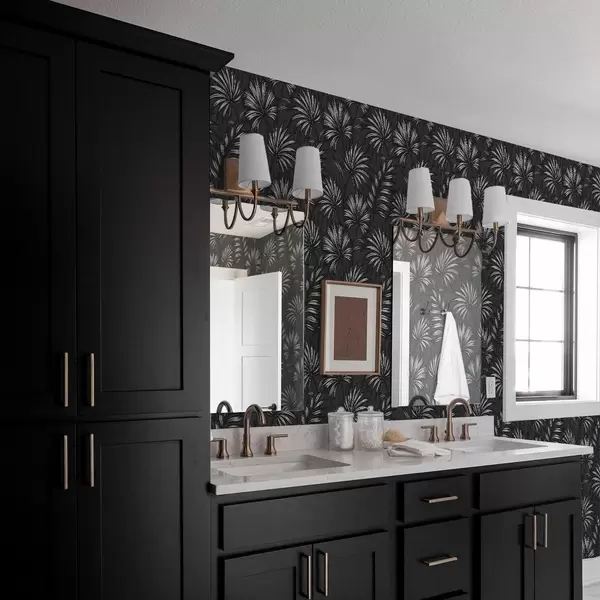 Tapete Schwarz-weiße Palmblätter auf dunklem Hintergrund Nr. a00891