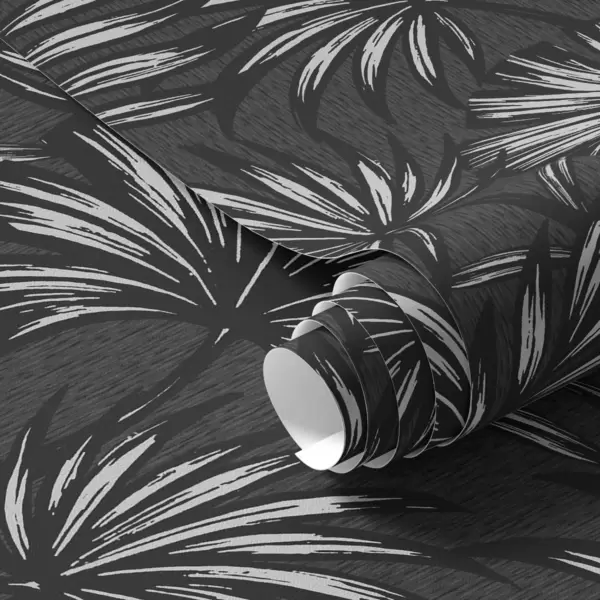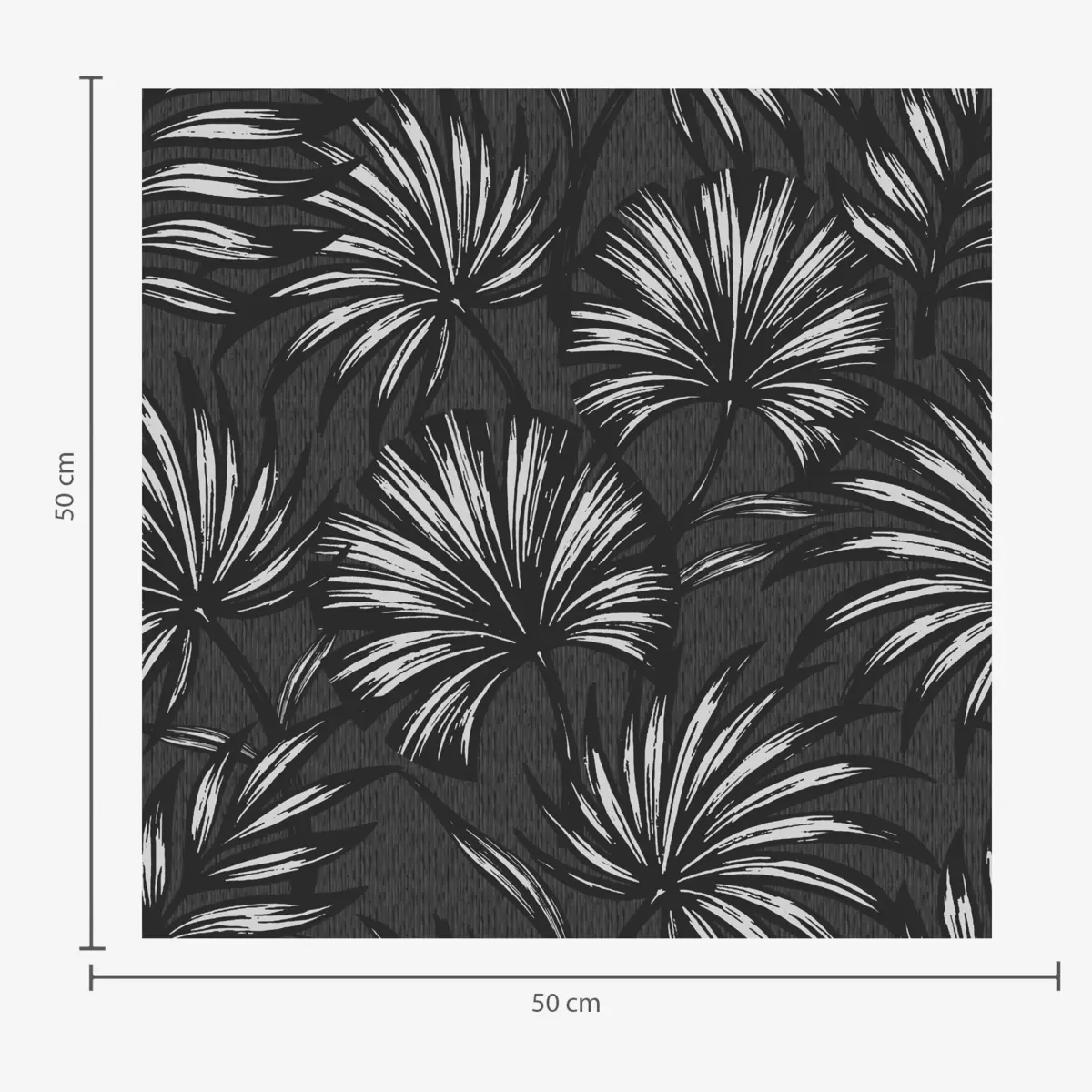 Tapete Schwarz-weiße Palmblätter auf dunklem Hintergrund Nr. a00891