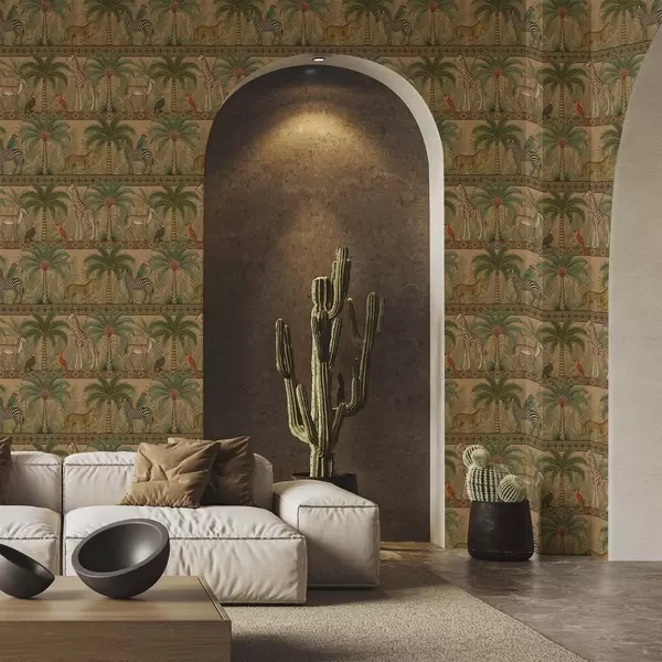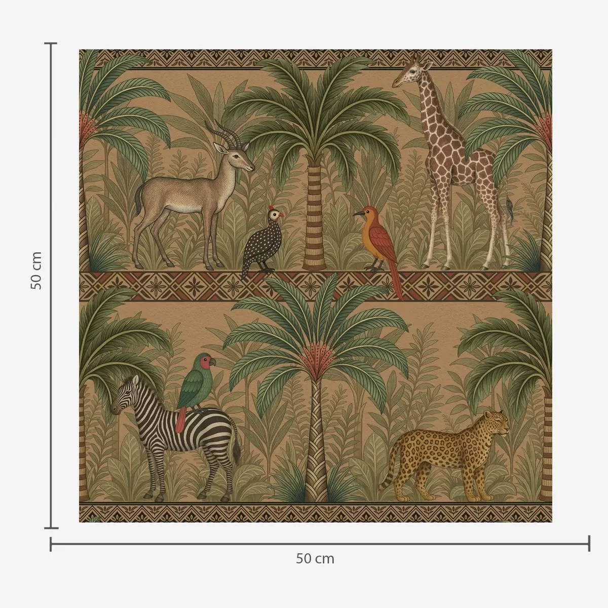 Tapete Dekorative Savannentiere zwischen Palmen und Bordüren Nr. a00898