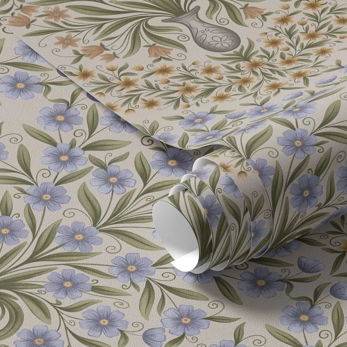 Tapete Volksvasen mit blauen Blüten und Olivenblättern auf rosa Hintergrund Nr. a00900