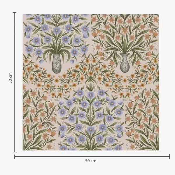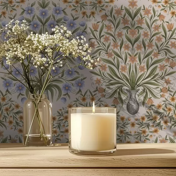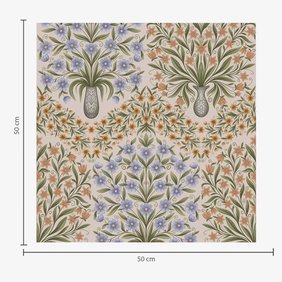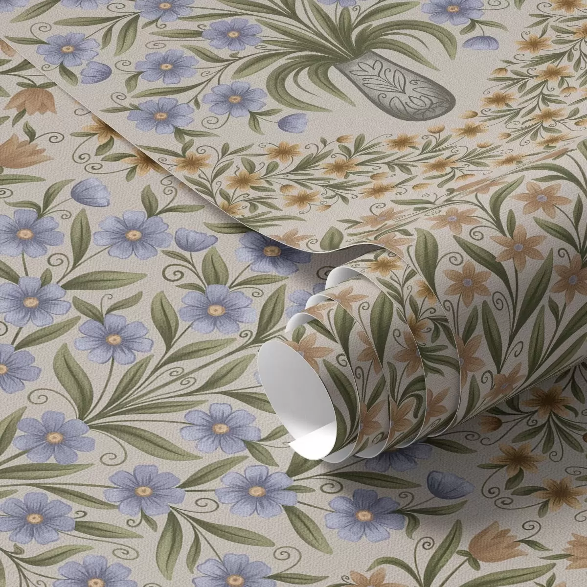 Tapete Wechselnde Vasen und blaue Blumen in Salbei auf Blush Nr. a00901