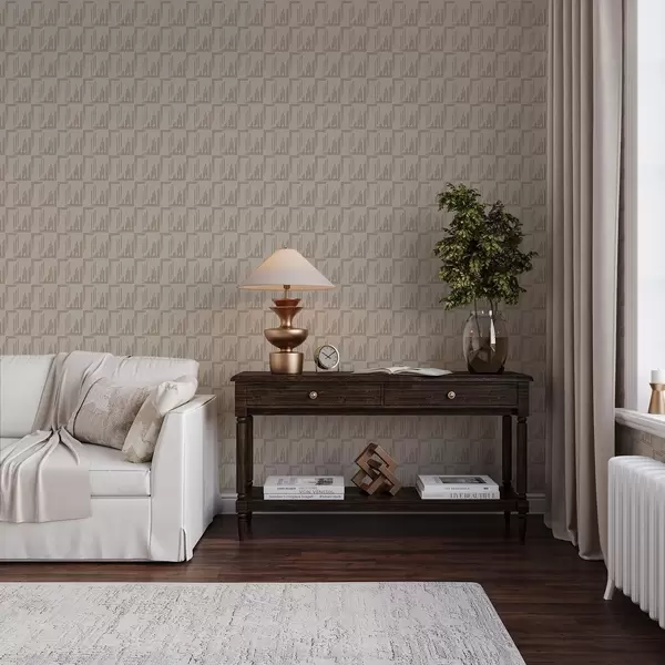 Tapete Kakao-Linienarbeit Eckquadrate auf warmem Beige Nr. a00910