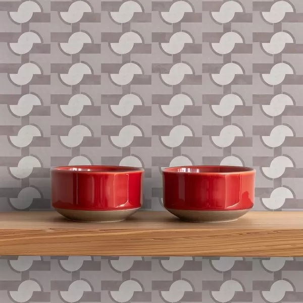 Tapete Mauvefarbene modulare Fliesen mit verbundenen Halbkreisen Nr. a00915