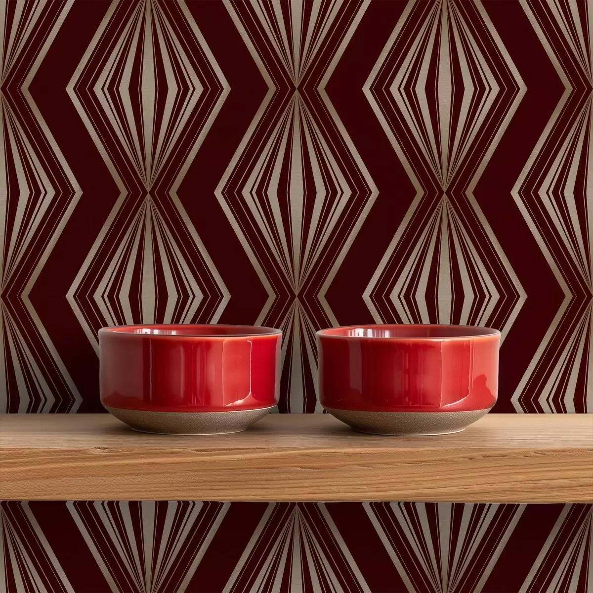 Tapete Diamantförmiges geometrisches Muster auf weinrotem Hintergrund Nr. a00925v1