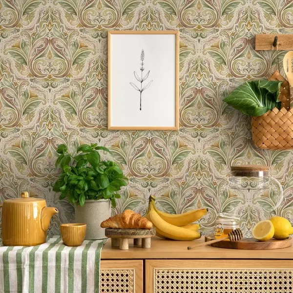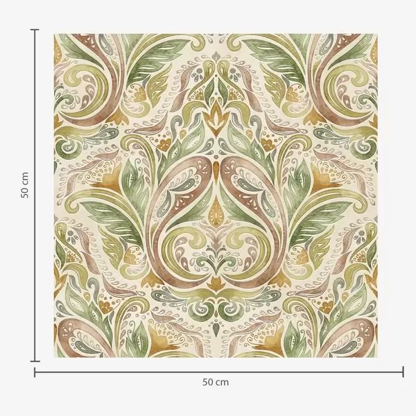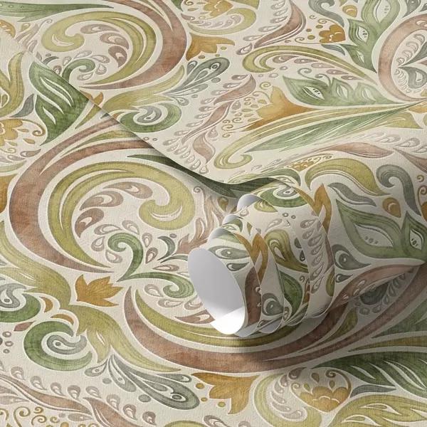 Tapete Aquarell-Blattwirbel in Grün- und warmen Ockertönen Nr. a00927