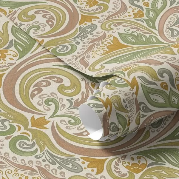 Tapete Zierliche Blattwirbel in Grün- und Terrakottatönen Nr. a00927v1