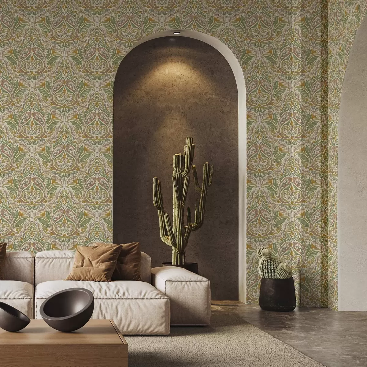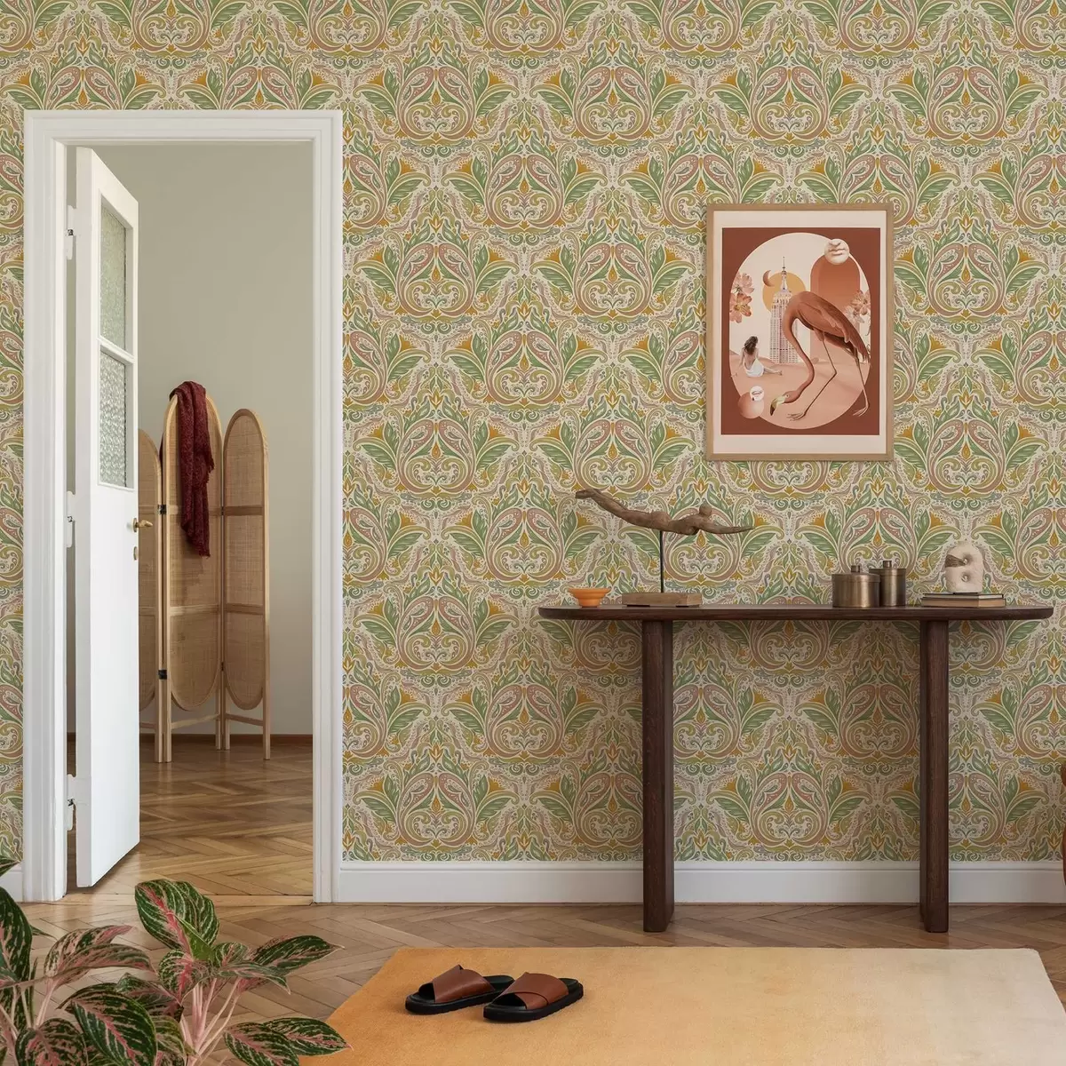 Tapete Zierliche Blattwirbel in Grün- und Terrakottatönen Nr. a00927v1