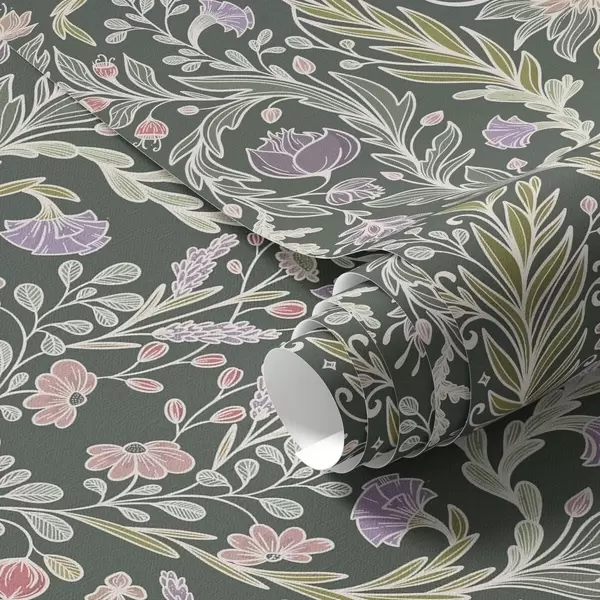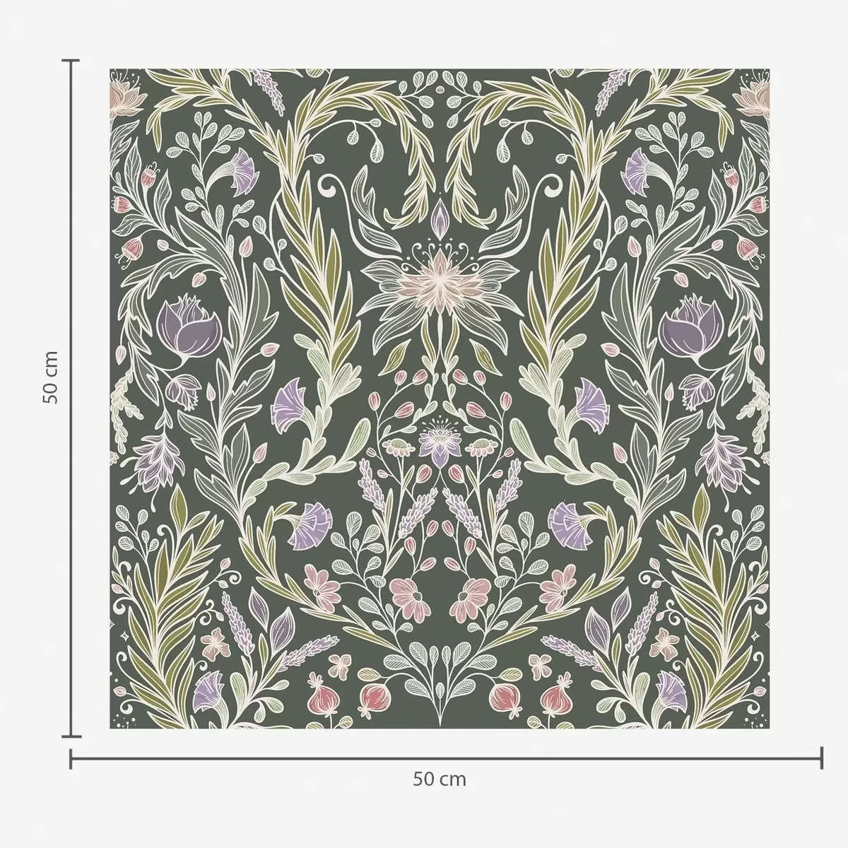 Tapete Symmetrisches Blumenornament auf dunkelgrünem Hintergrund Nr. a00928