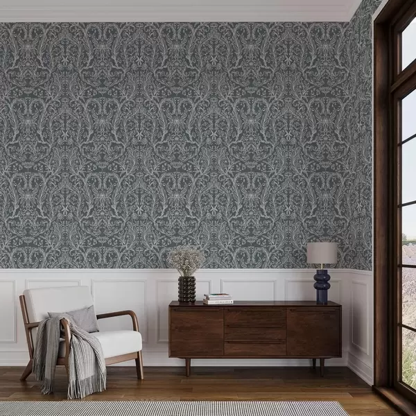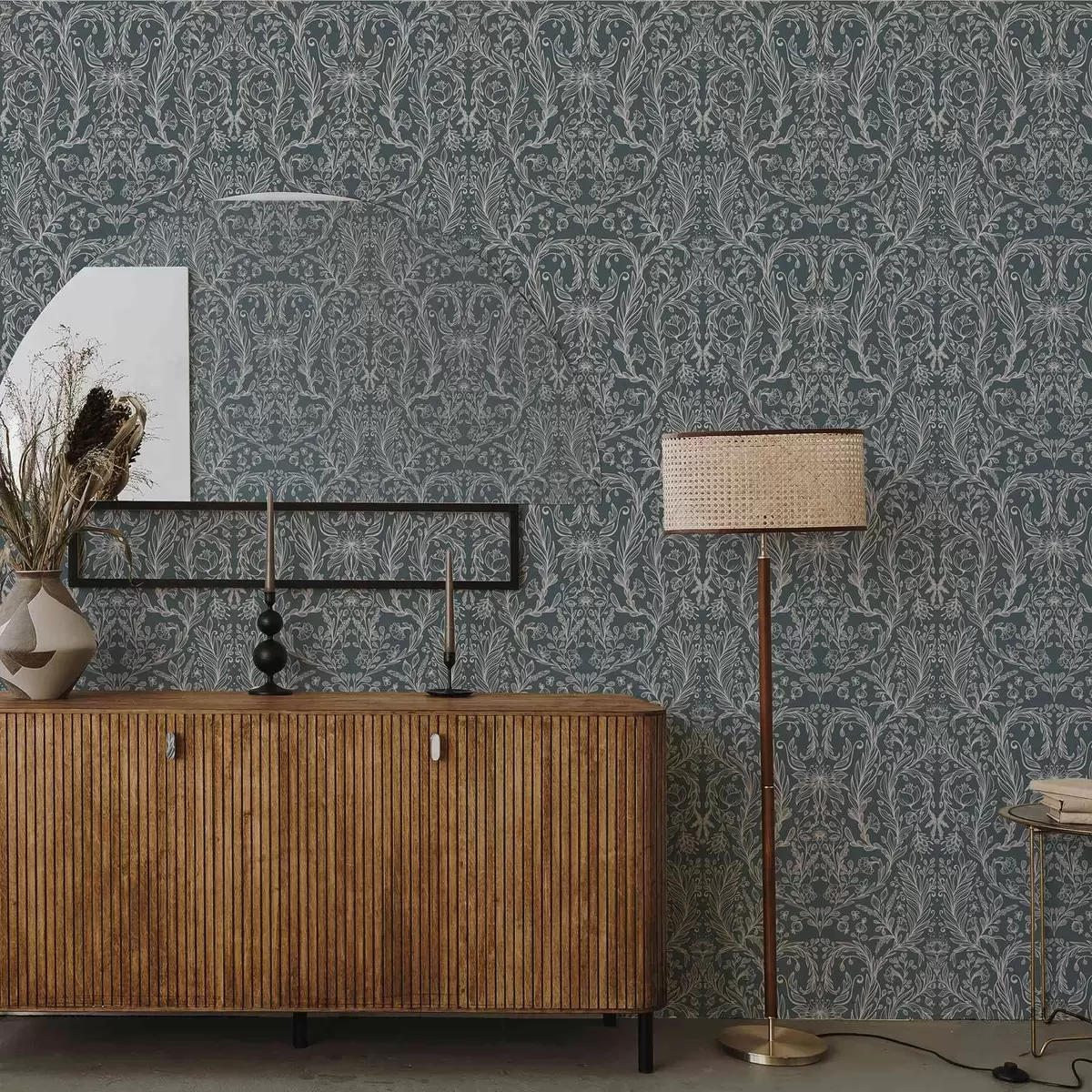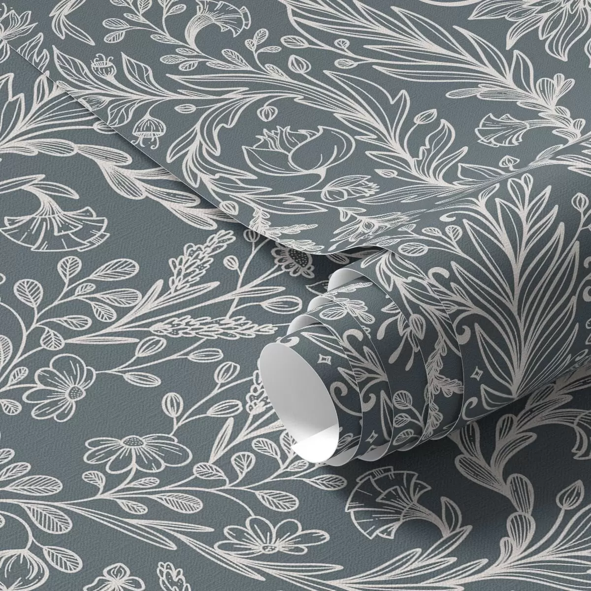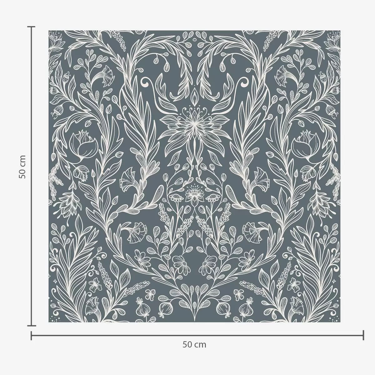 Tapete Lineares Blumenornament auf blaugrauem Hintergrund Nr. a00929v1