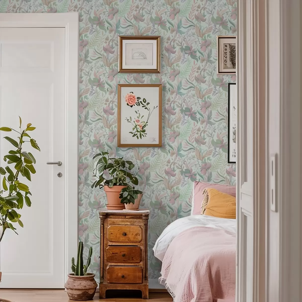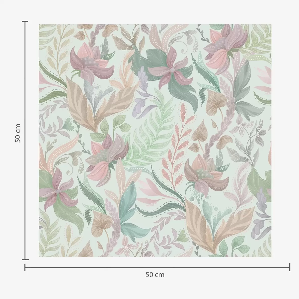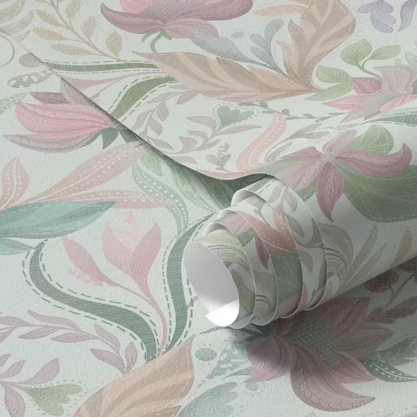 Tapete Pastellfarbene Blumenmuster auf einem zarten Mint-Hintergrund Nr. a00931v1