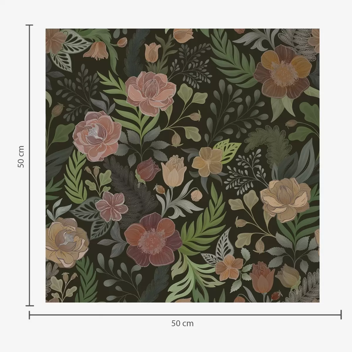 Tapete Üppige Blumen und Grünpflanzen vor einem tiefdunklen Hintergrund Nr. a00932