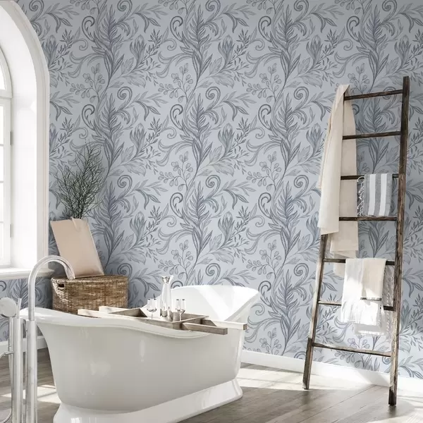 Tapete Helle, eisblaue, gewellte Blätter mit Bleistiftstruktur Nr. a00935v1