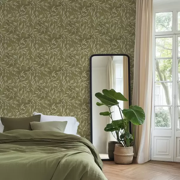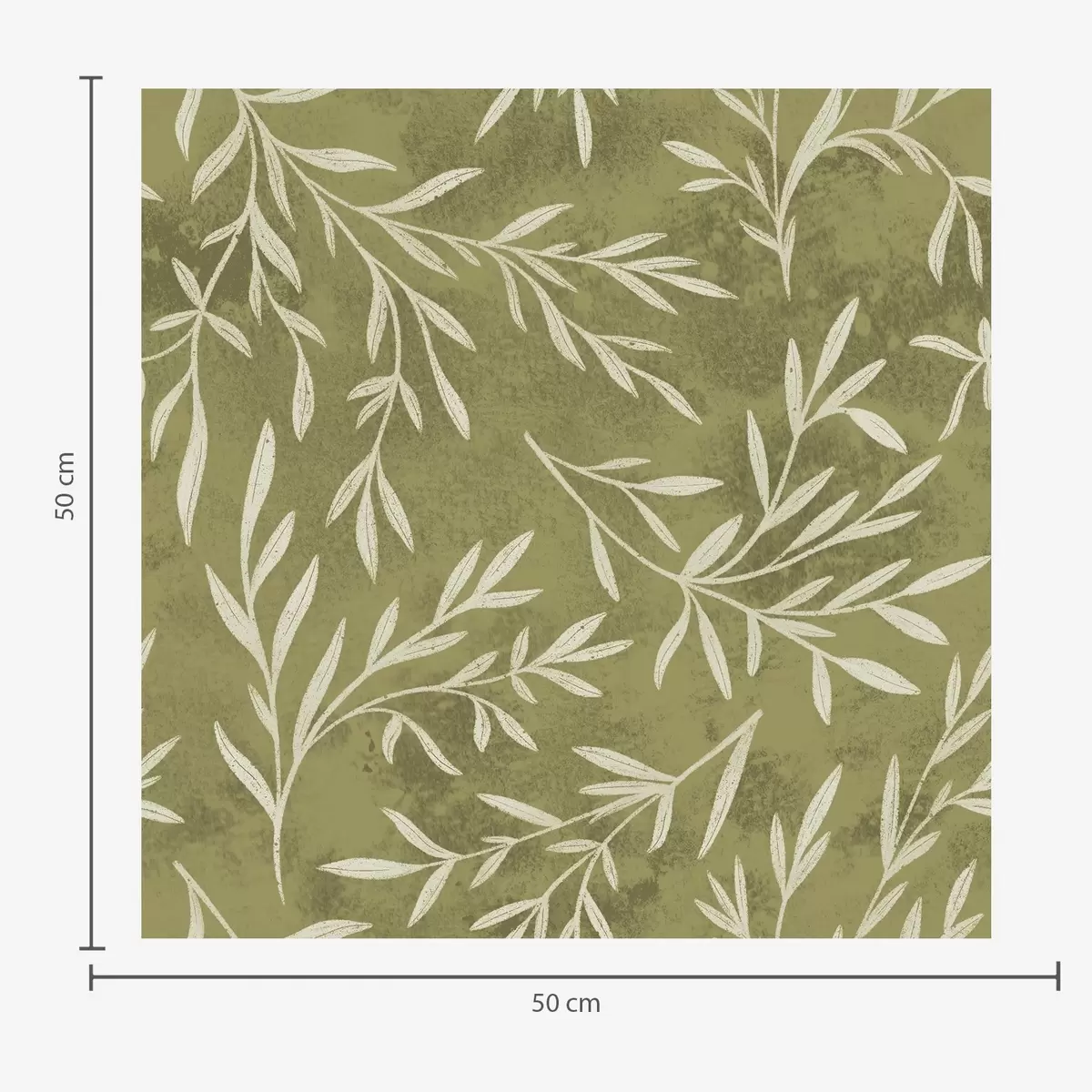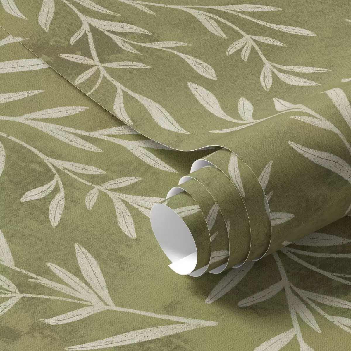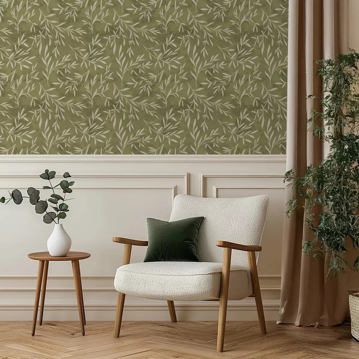 Tapete Cremeweiße Zweige auf einem warmen olivfarbenen strukturierten Hintergrund Nr. a00936v1