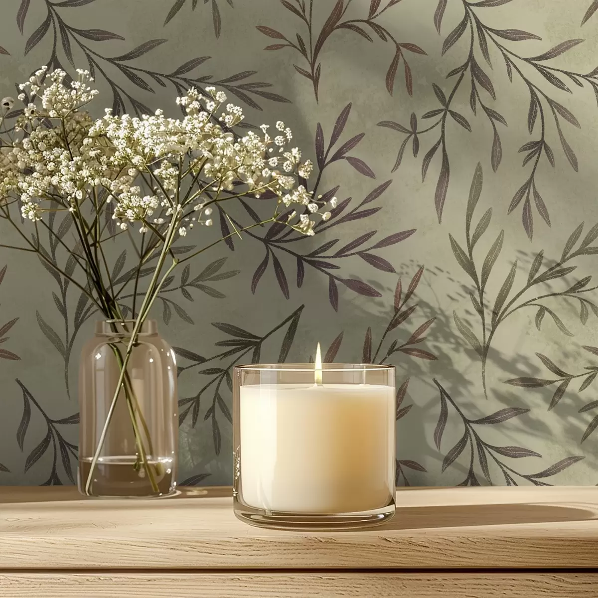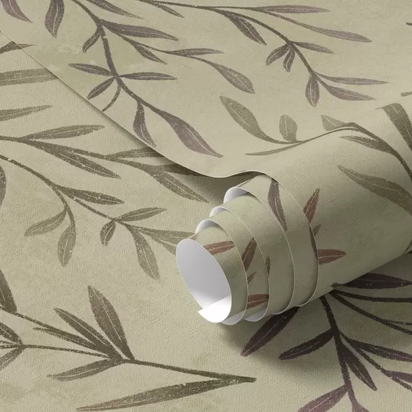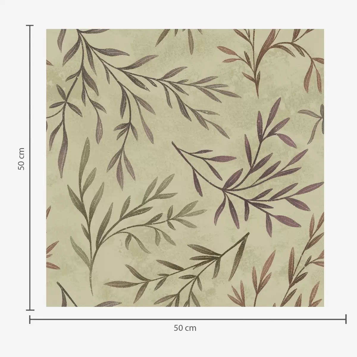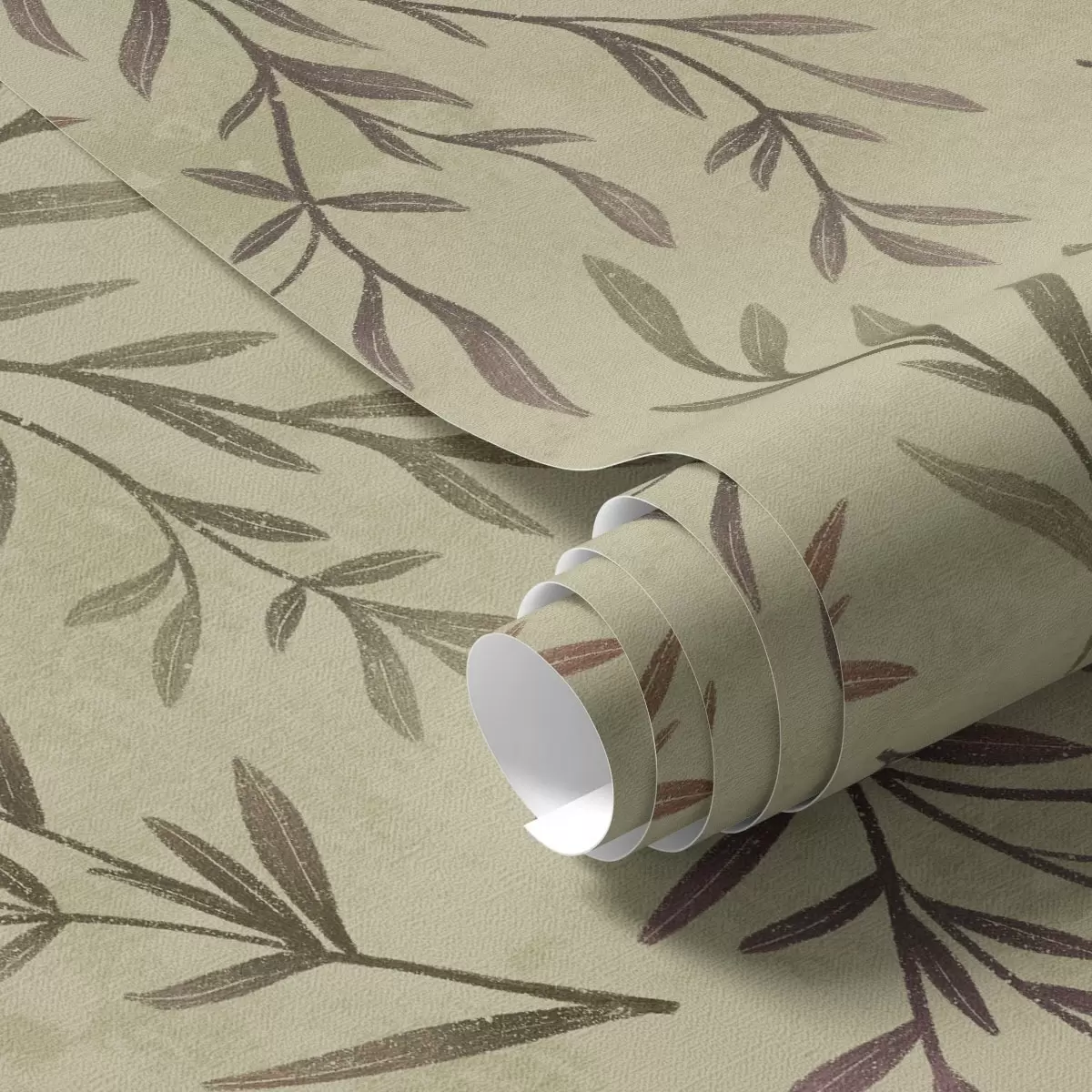Tapete Lila und grüne Zweige mit Blättern auf warmem Hintergrund Nr. a00936v4