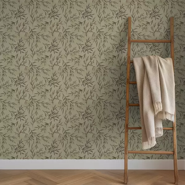 Tapete Lila und grüne Zweige mit Blättern auf warmem Hintergrund Nr. a00936v4