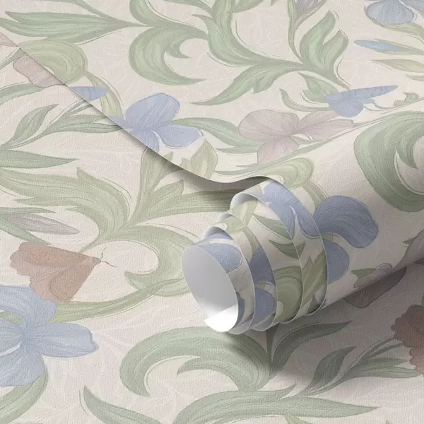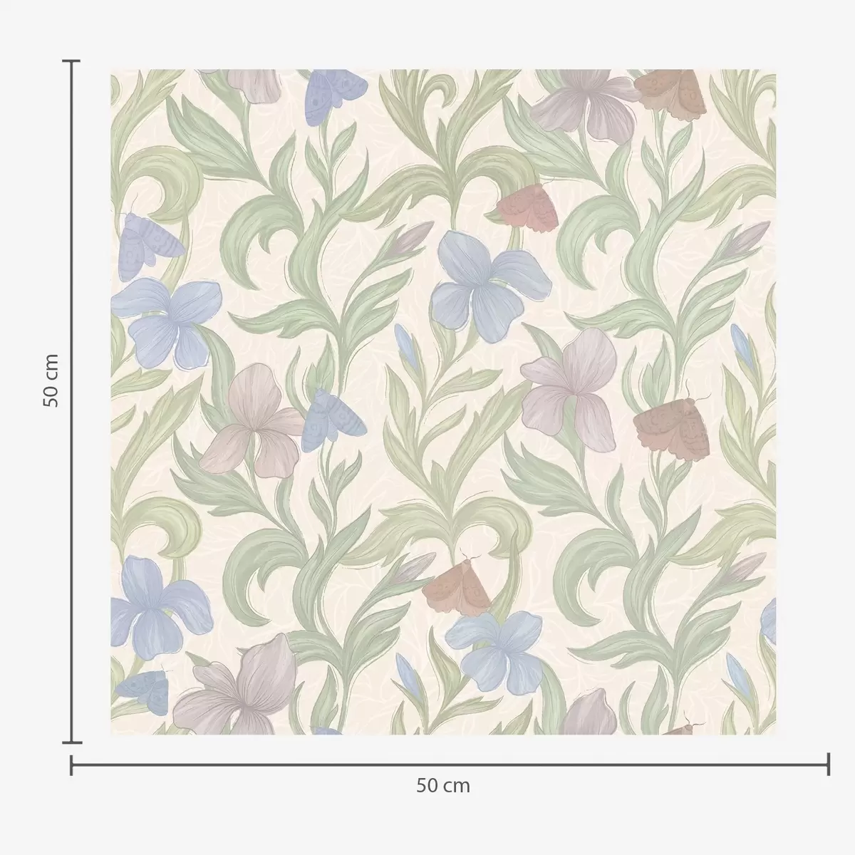 Tapete Pastellfarbene Blumen und Schmetterlinge auf cremefarbenem Hintergrund Nr. a00944