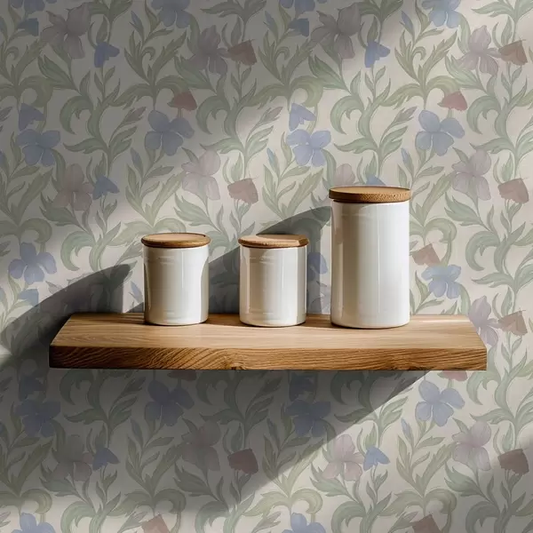 Tapete Pastellfarbene Blumen und Schmetterlinge auf cremefarbenem Hintergrund Nr. a00944
