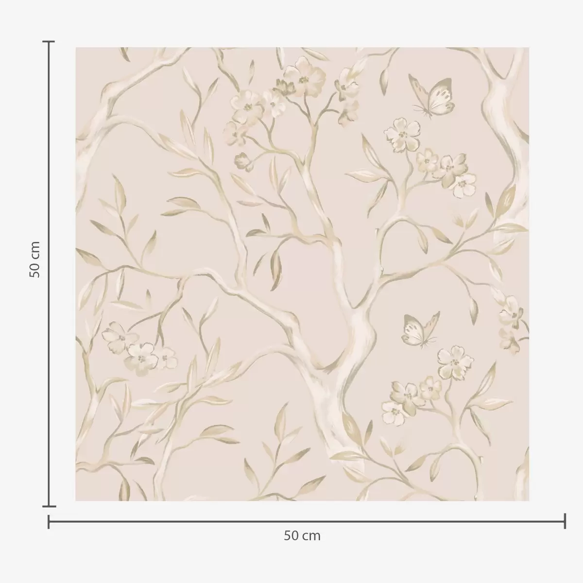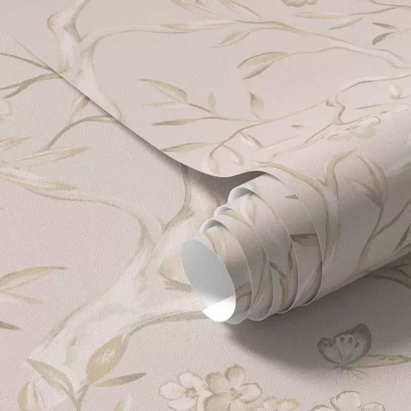 Tapete Beigefarbene Blütenzweige mit Schmetterlingen vor einem sanften Hintergrund Nr. a00951v2