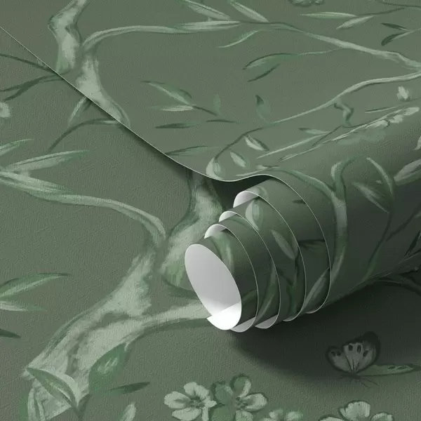 Tapete Grüne blühende Zweige mit Schmetterlingen vor einem dunklen Hintergrund Nr. a00951v3