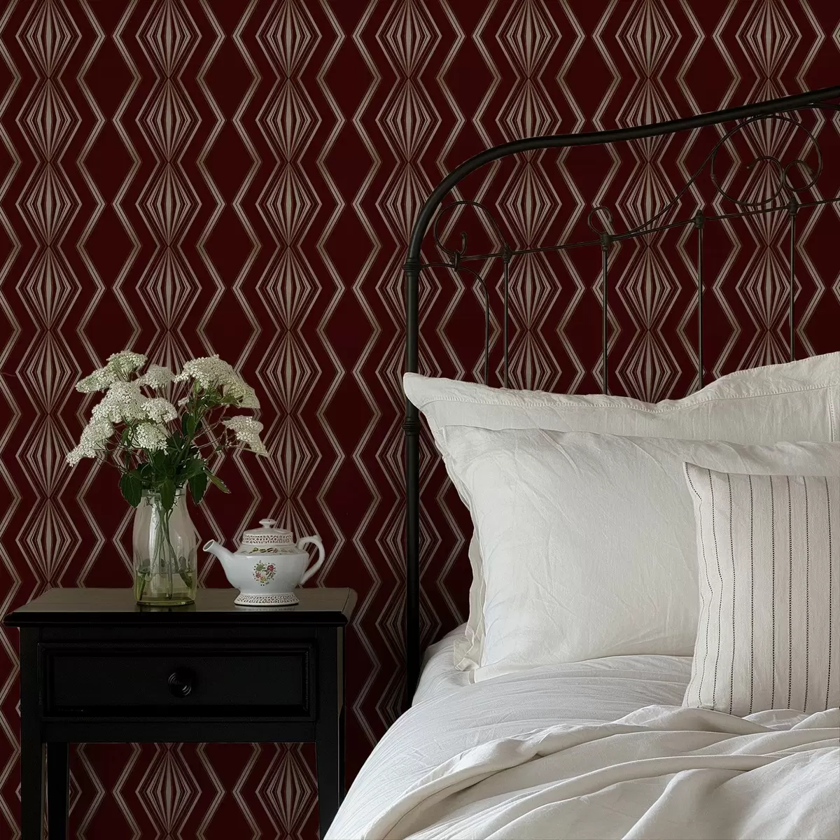 Tapete Burgunderroter Hintergrund mit rhythmischen Rauten und Zickzacklinien Nr. a00974
