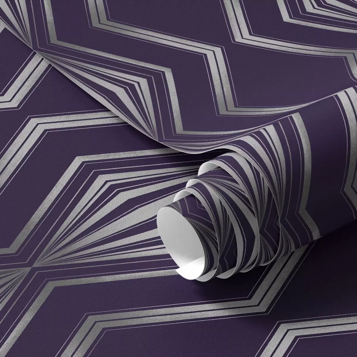 Tapete Sattvioletter Hintergrund mit Diamanten und grauen Zickzacklinien Nr. a00974v1