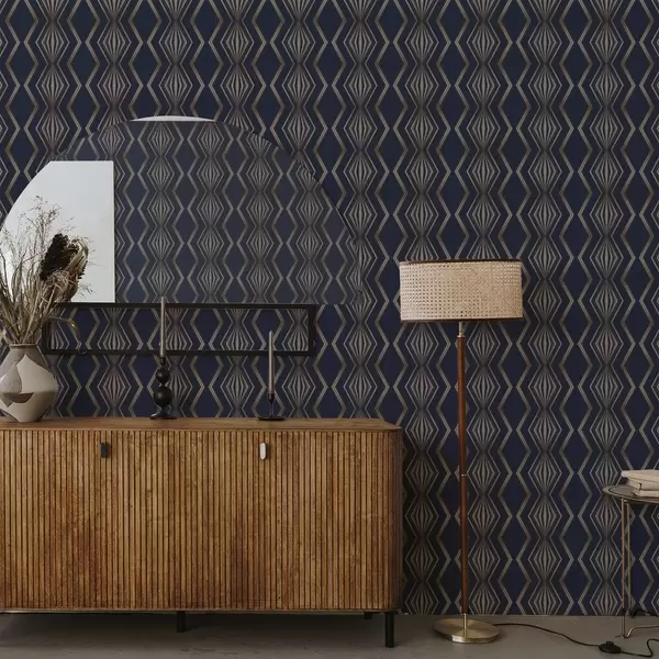 Tapete Dunkelblauer Hintergrund mit geometrischen Rauten und Zickzackmustern Nr. a00974v2